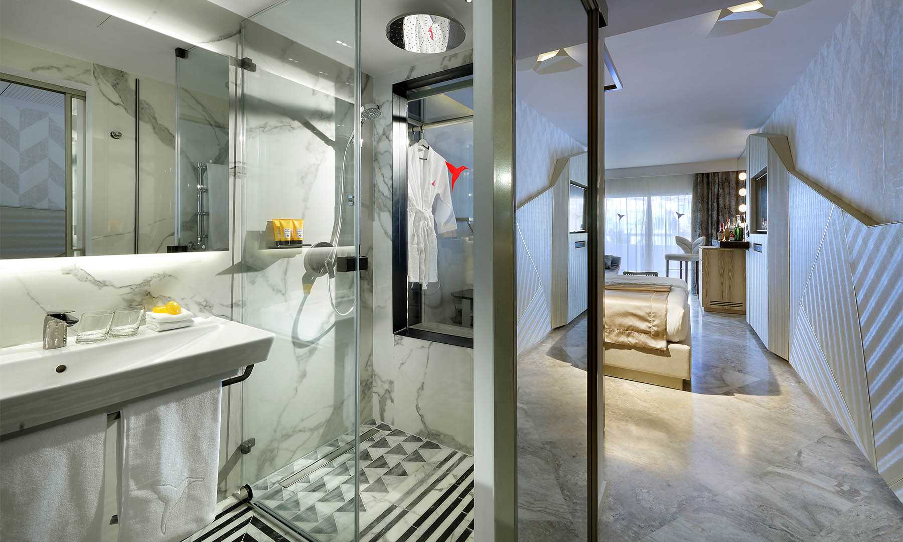 Not knowing the time and enjoying the feeling. Instantly sharing with your friends (and almost friends) your most enticing smile. Going to the terrace with drink in hand to enjoy the spectacle from your Double Superior Stage View, like a VIP. Dance. Let go. Jump. Fall in love at first glance. Plan your next move from your vantage point. Hunt. Devour. And keep on dancing. Afterwards, rest in a luxurious room. You will be at the heart of the best daytime party in Ibiza. The heart of Ushuaïa.