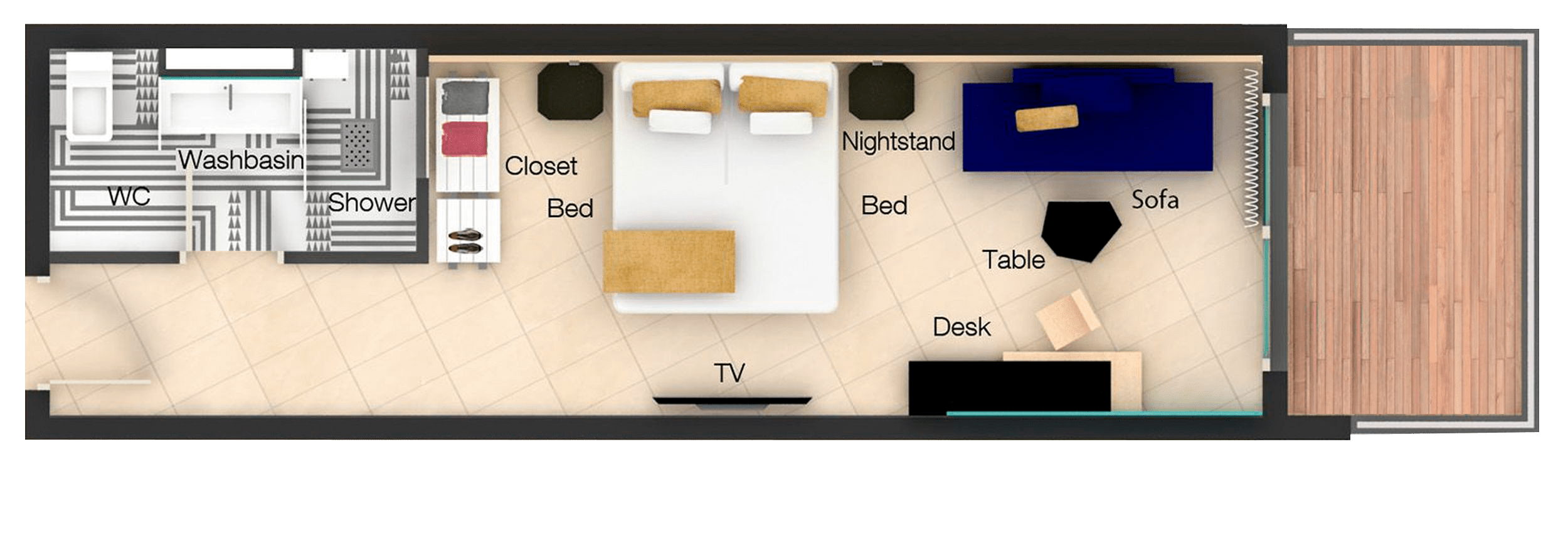 45,30,Dos cama individuales (de 100 cm cada una) convertibles en una cama doble (bajo petición).