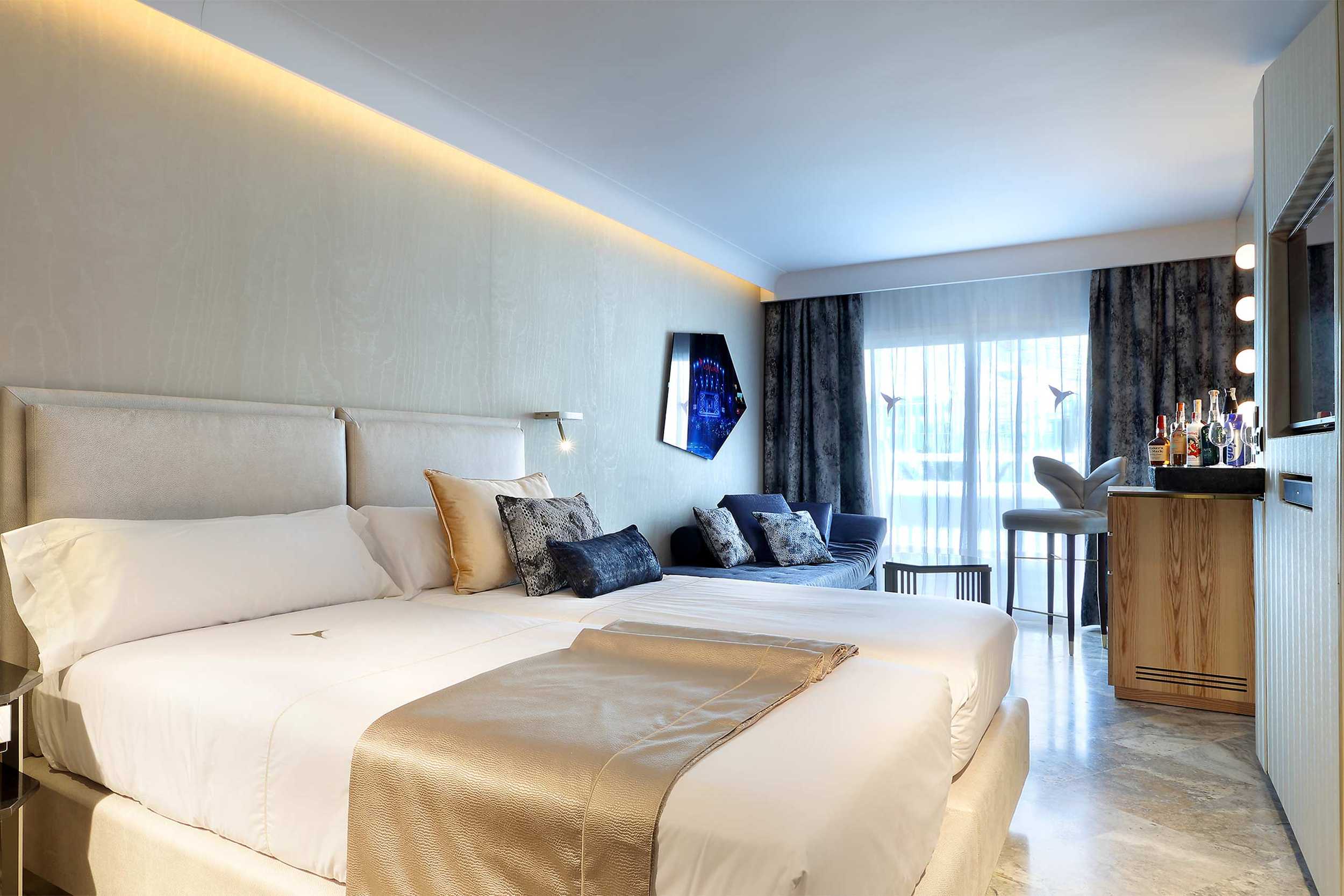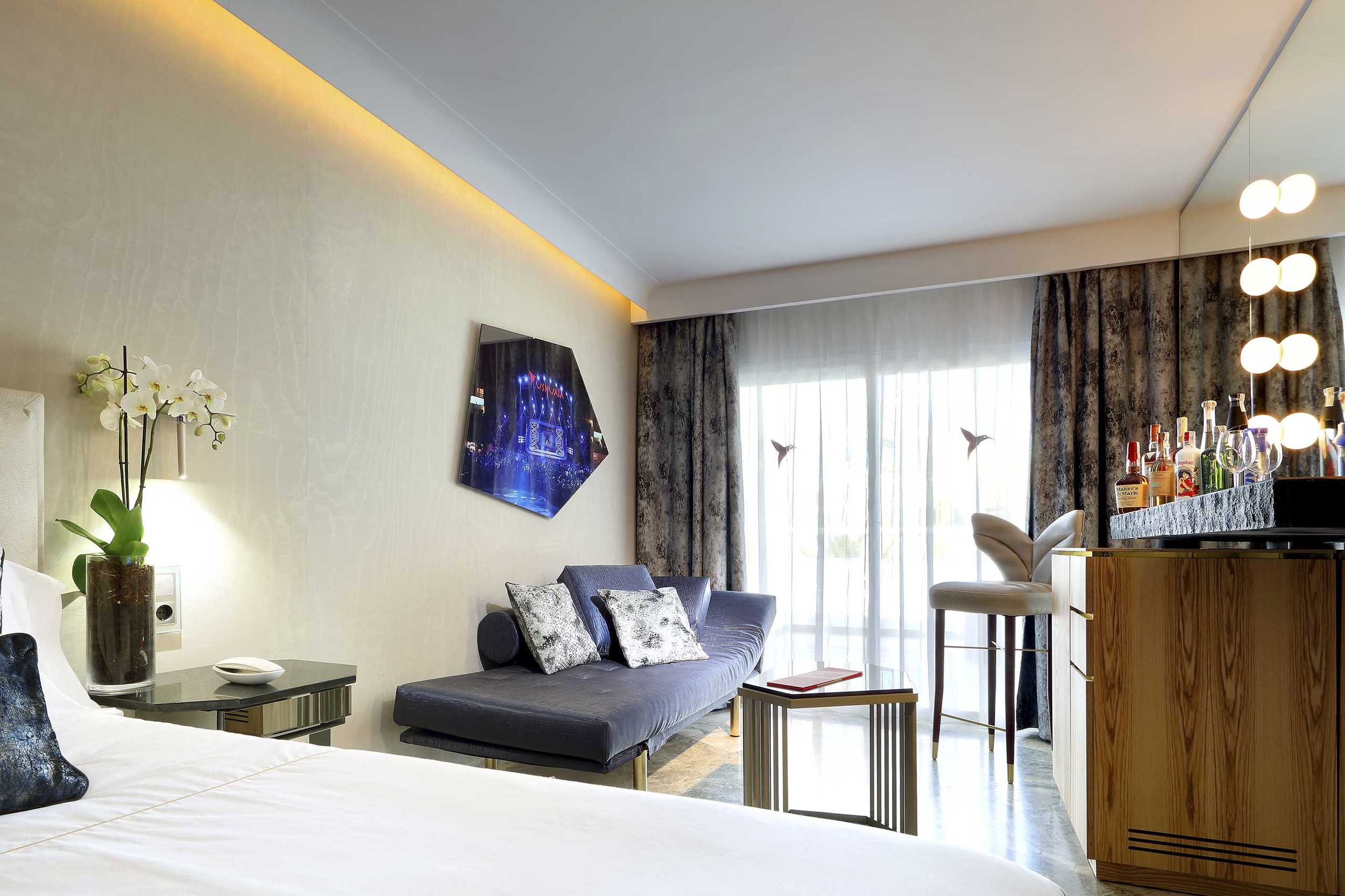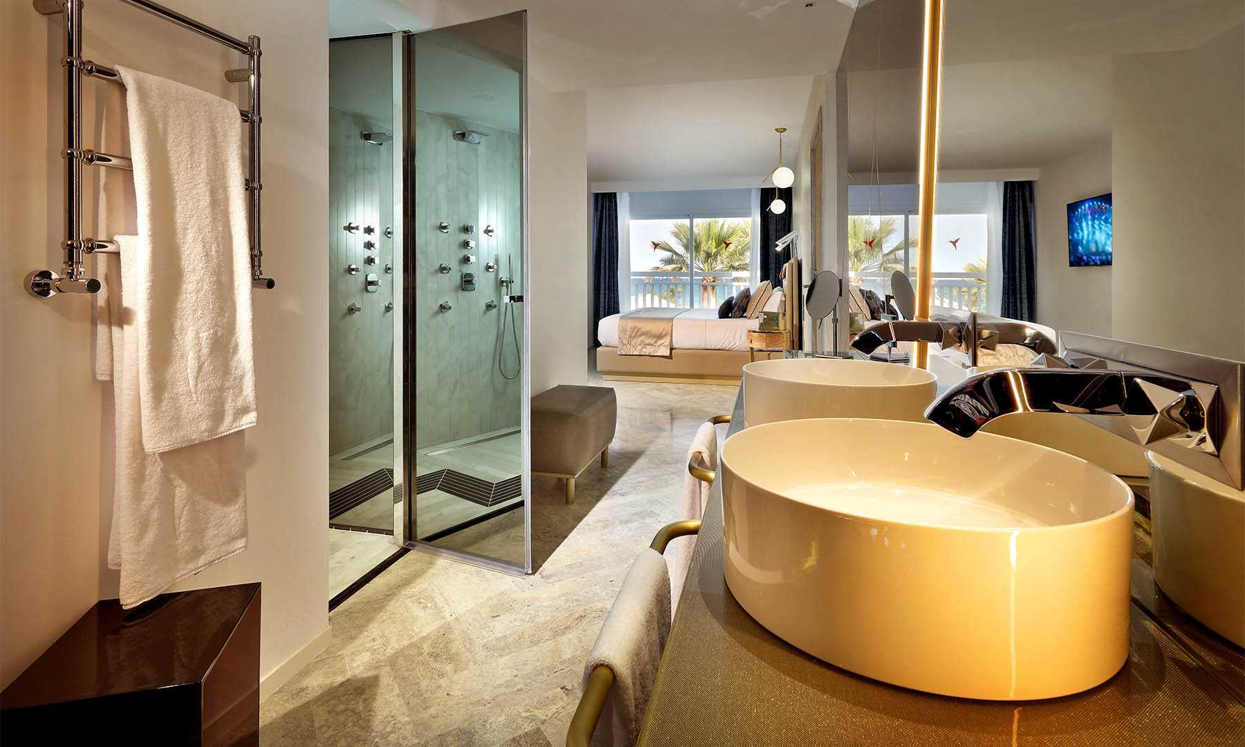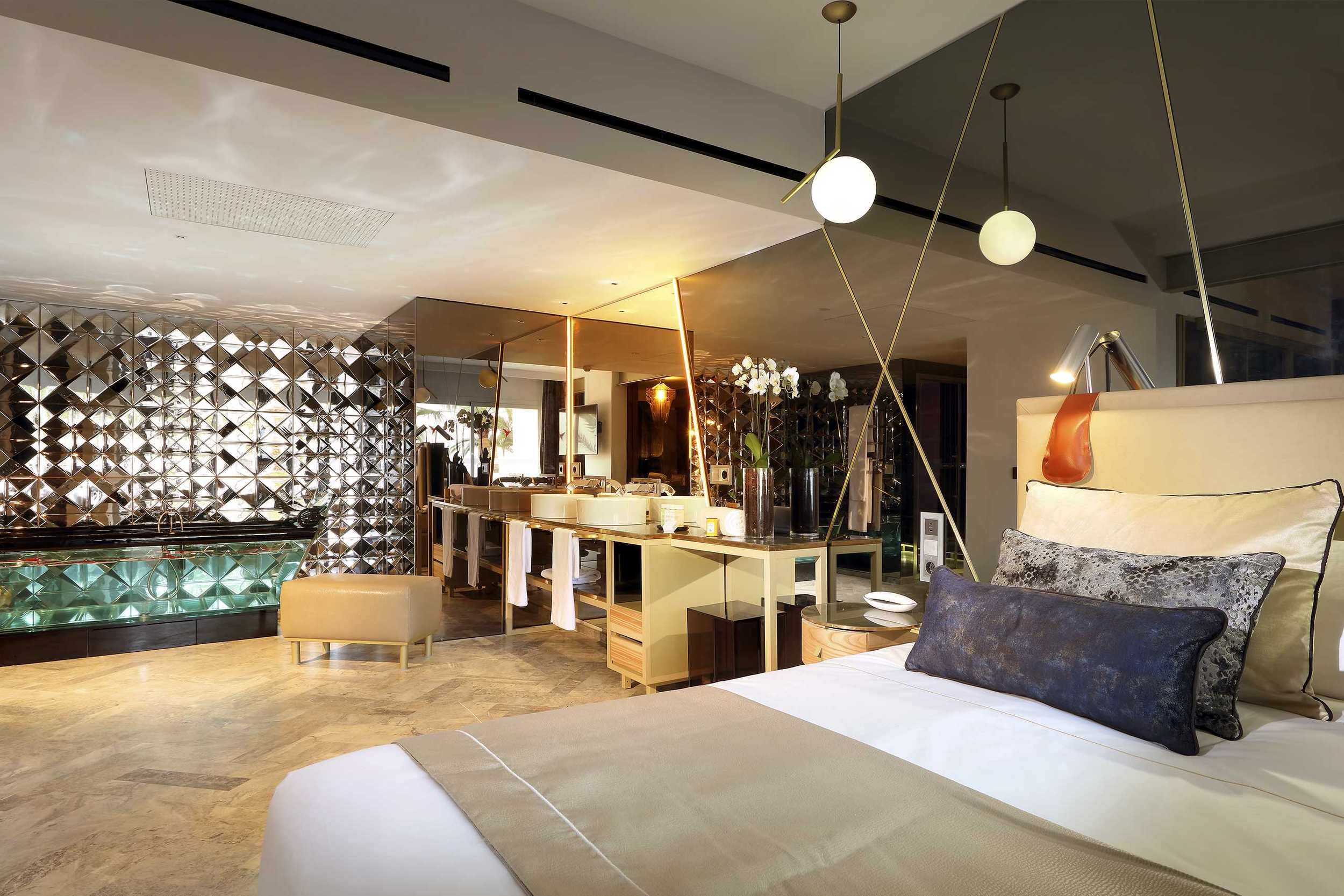Caprichos. Deseos. Apetitos. La felicidad a veces es muy sencilla. Basta con satisfacer los impulsos. Escaparse a la playa en mitad de la noche y hundir los pies en la arena. Abrir el kit erótico. Y usarlo. Renacer en la bañera de hidromasaje de la terraza. Bajo las estrellas. O a pleno sol. La exclusiva Suite Ay Caramba, situada en la primera planta, cuenta con tres terrazas y nada escapa a la vista desde ellas. Sólo es cuestión de decidirse… Puro antojo. Y con todos los detalles que la convierten en una exclusiva suite de lujo al más puro estilo Ushuaïa Ibiza.